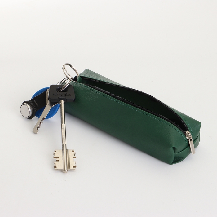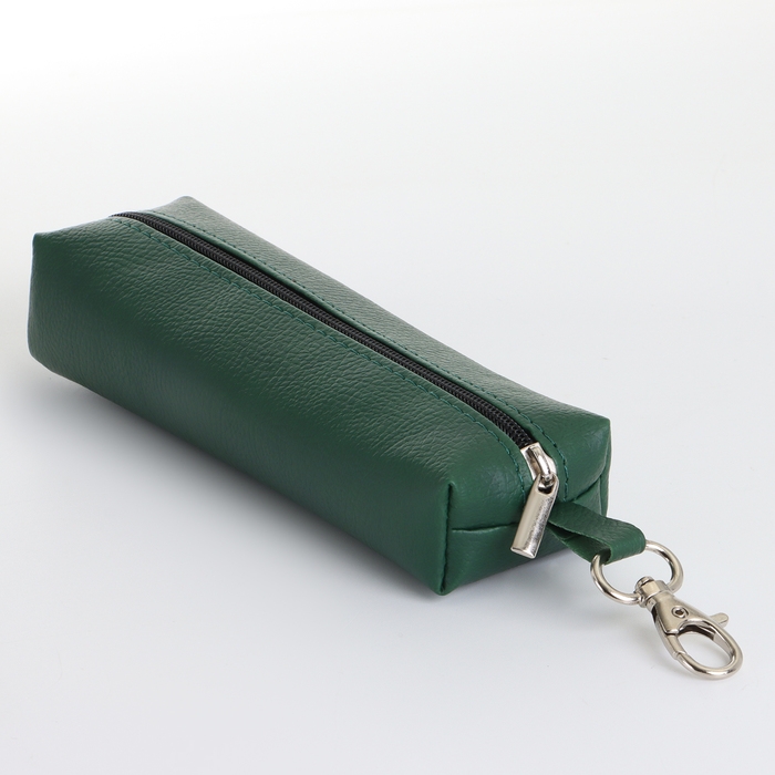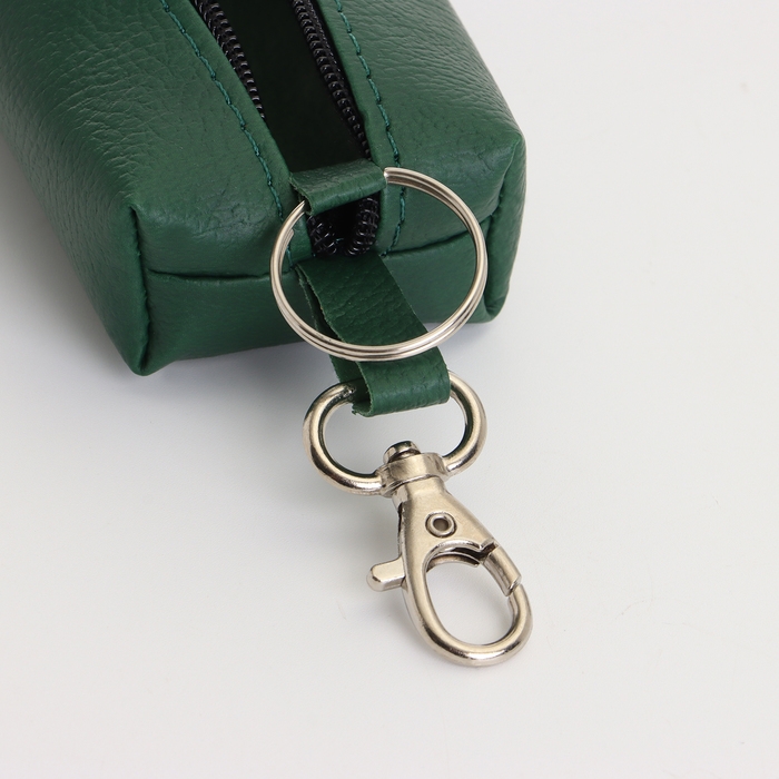 Ключница на молнии, длина 16 см, кольцо, карабин, цвет зелёный