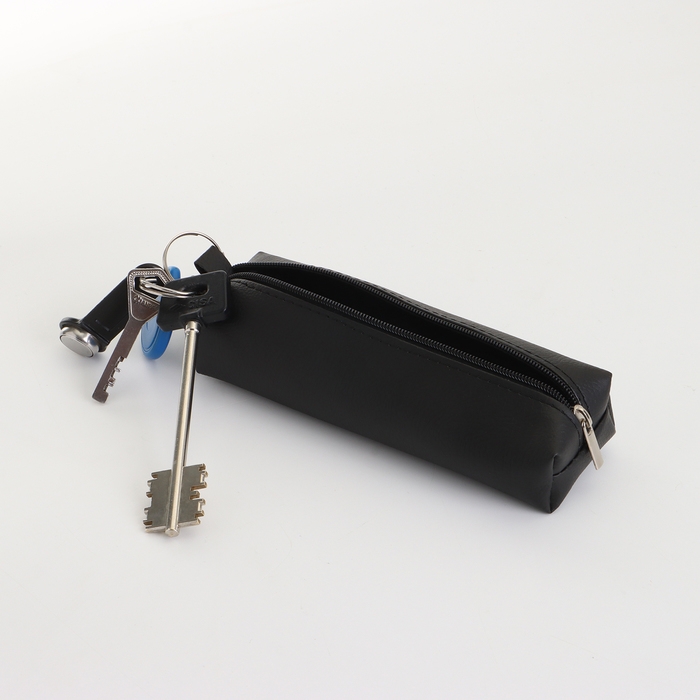 Ключница на молнии, длина 16 см, кольцо, карабин, цвет чёрный