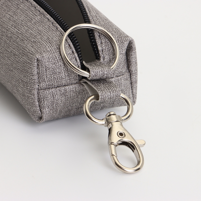 Ключница на молнии, длина 16 см, кольцо, карабин, цвет серый