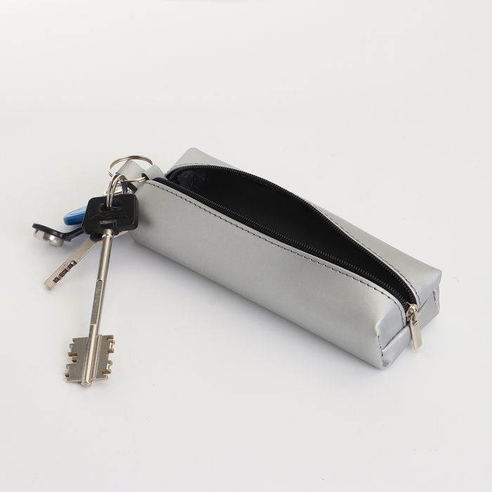Ключница на молнии, длина 16 см, кольцо, карабин, цвет серебряный