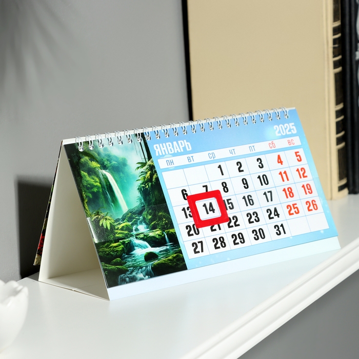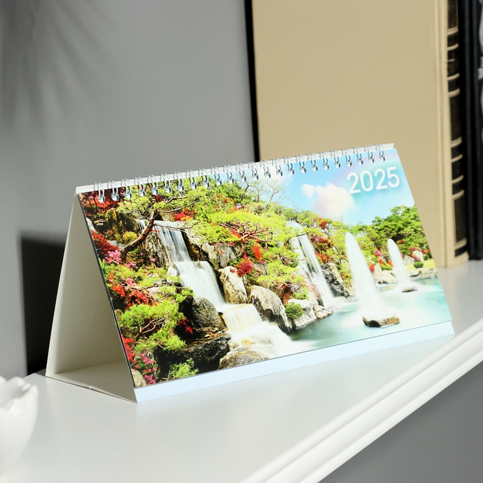 Календарь настольный, домик с курсором "Водопады" 2025 год, 10,5 х 22 см
