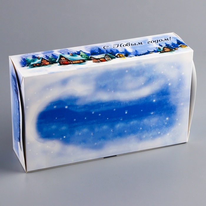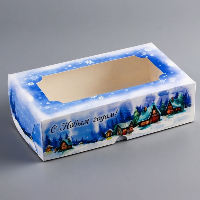 Новый год. Коробка складная, кондитерская упаковка с окном "Зимняя деревенька", 25 х 15 х 7 см