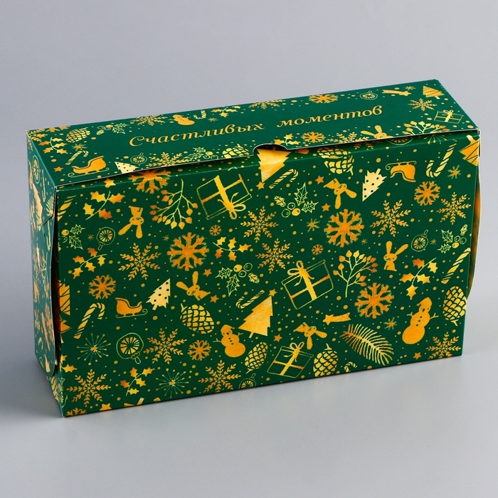 Новый год. Коробка складная, кондитерская упаковка с окном "Счастливых моментов" , 25 х 15 х 7 см