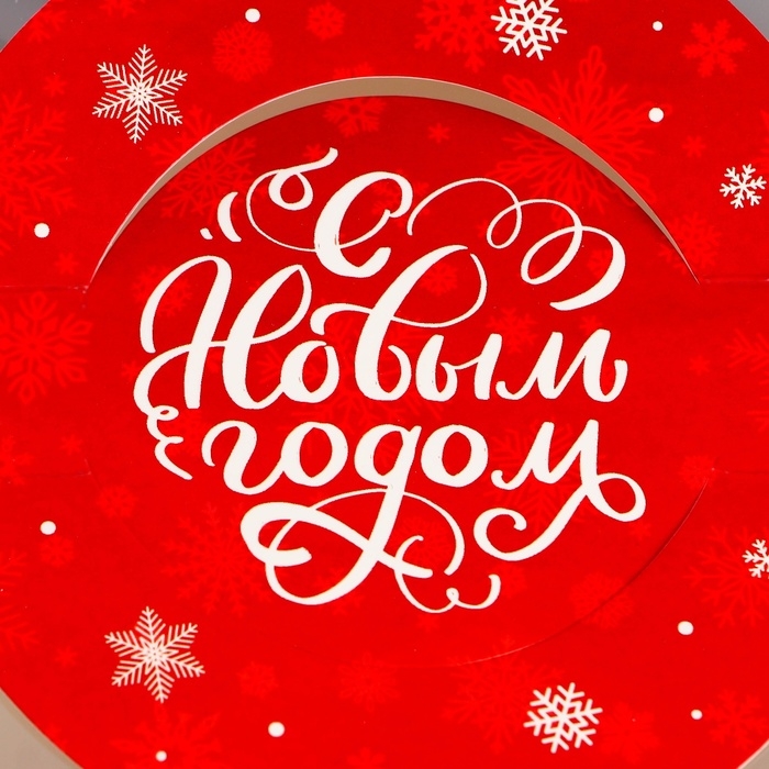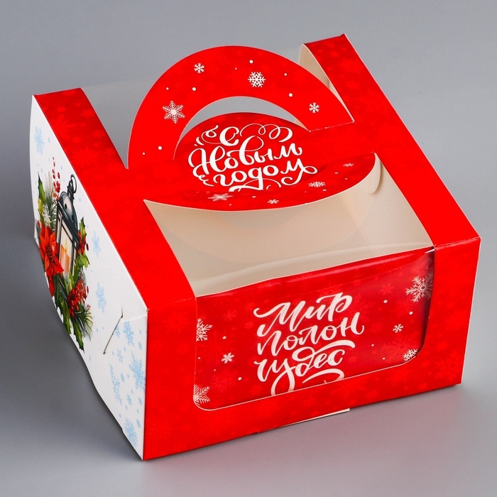 Новый год. Коробка под бенто-торт с окном "С Новым годом!", 14 х 14 х 8 см