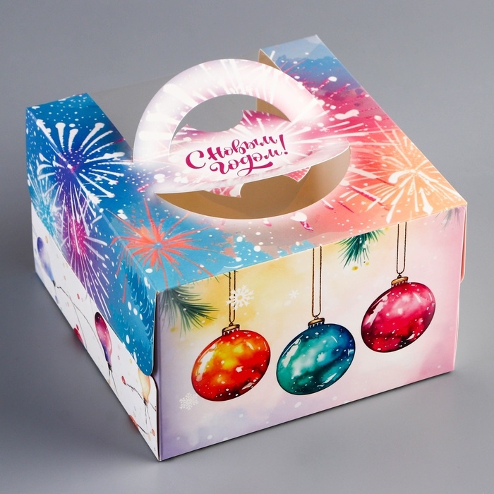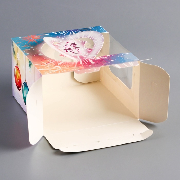 Компактный размер коробки делает её идеальной для порционных тортов, а праздничное оформление — отличным выбором для подарка, новогодних мероприятий или продаж в кафе и кондитерских.