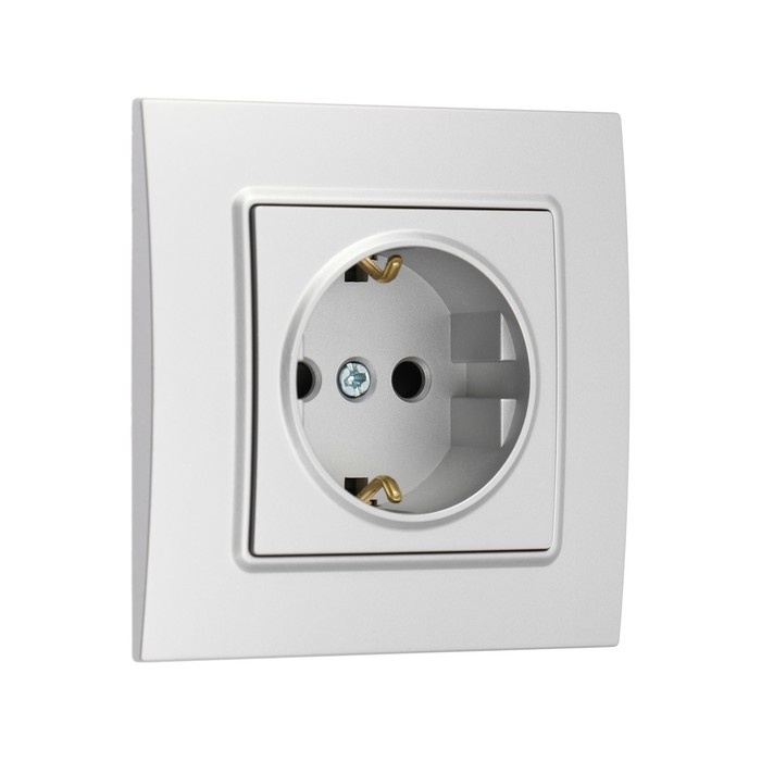 Розетка одноместная TOT Elegant, 16 А, скрытая, с з/к, серебристая