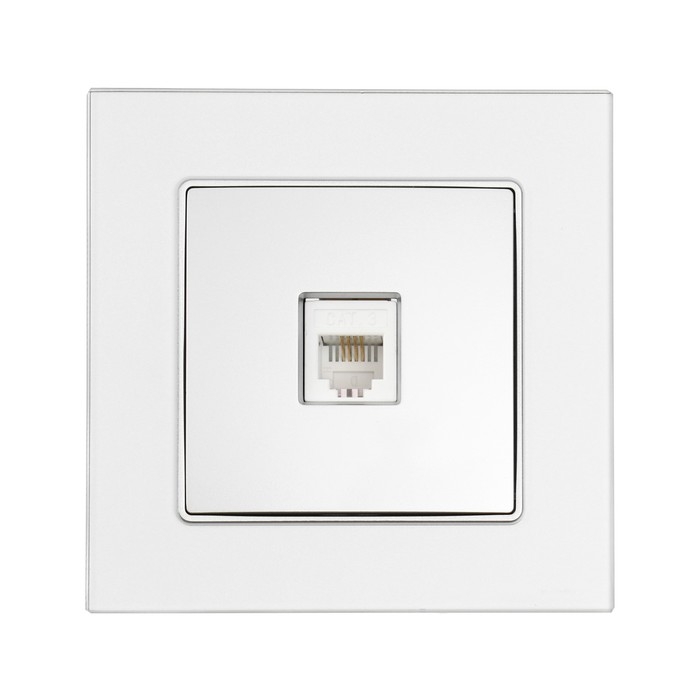 Розетка телефонная одноместная TOT Glossy Glass, скрытая, стекло, серебристая