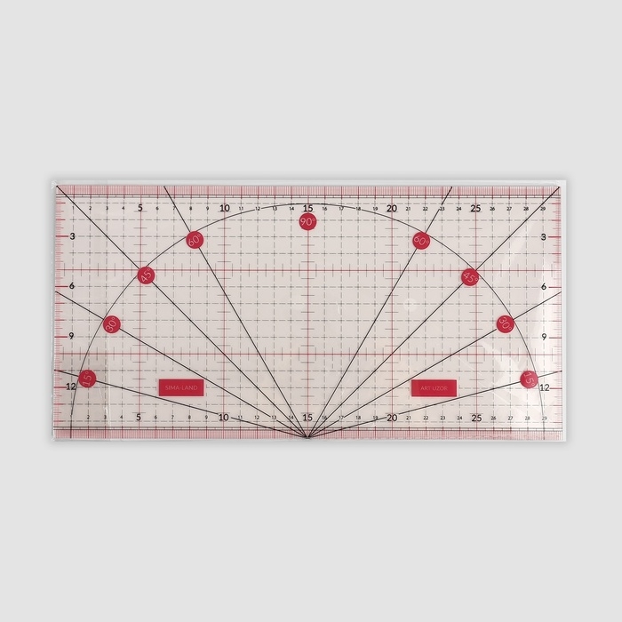 Линейка для квилтинга и пэчворка, с транспортиром, 30 × 15 см, цвет прозрачный/розовый