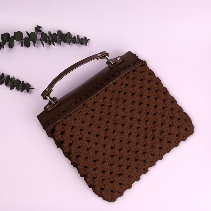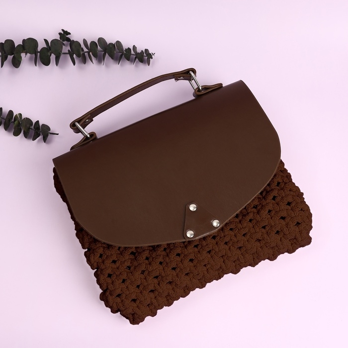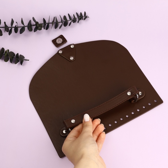 Крышка-клапан для сумки, с ручкой, на магнитной кнопке, 23 × 21 см, цвет коричневый/серебряный