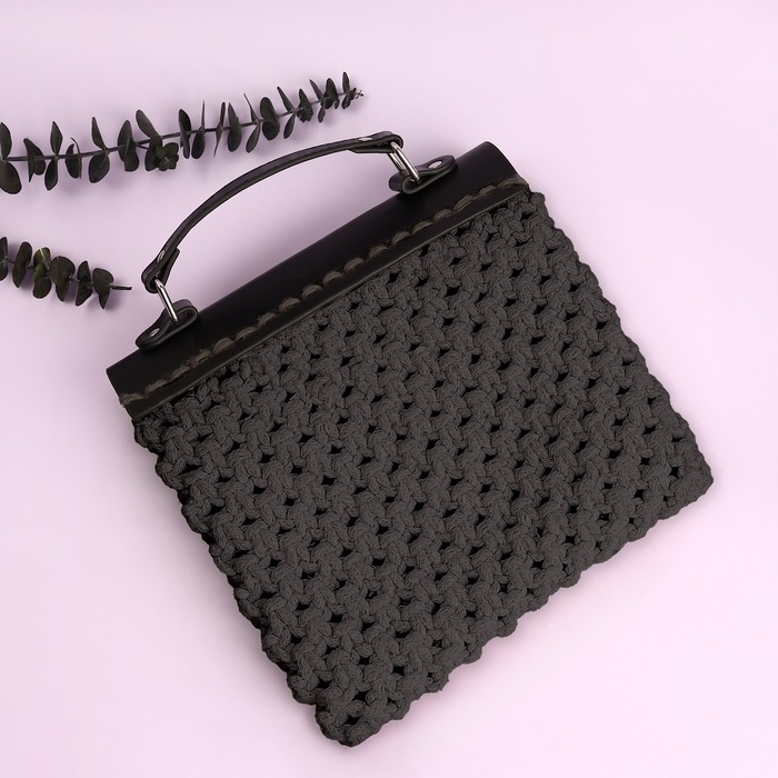 Крышка-клапан для сумки, с ручкой, на магнитной кнопке, 23 × 21 см, цвет чёрный/серебряный