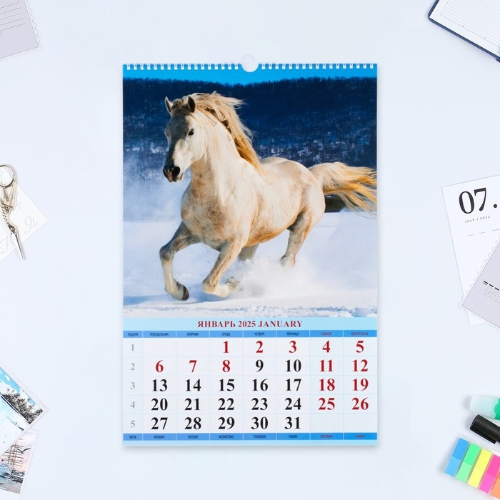Календарь перекидной на ригеле А3 "Лошади" 2025, 32 х 48 см