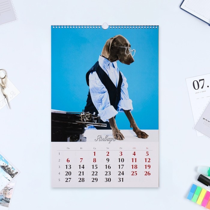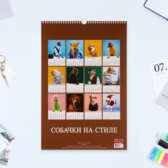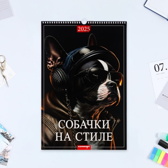 Календарь перекидной на ригеле А3 "Собачки на стиле" 2025 год, 32 х 48 см