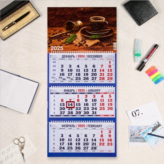 Календарь квартальный, трио "Кофе - 1" 2025, 69 х 31 см