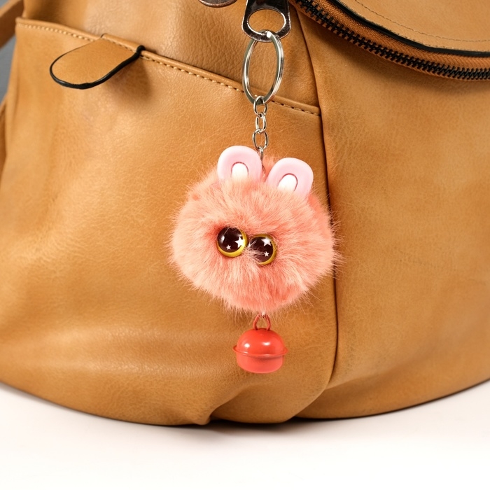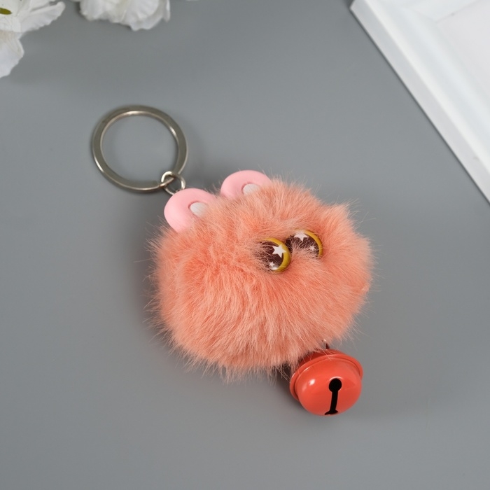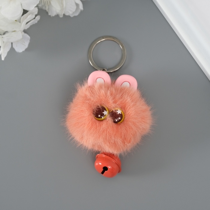 Пушистик на кольце "Звёздные глазки с бубенчиком" персиковый 8,5х6х6 см