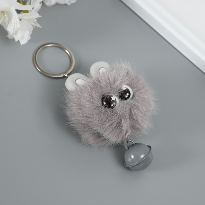 Пушистик на кольце "Звёздные глазки с бубенчиком" серый 8,5х6х6 см