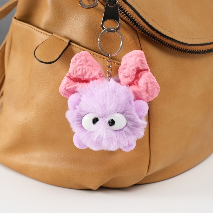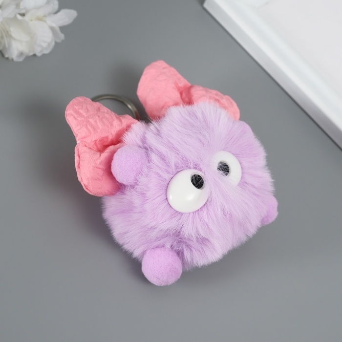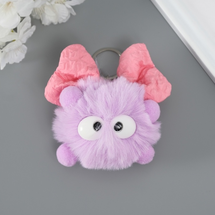 Пушистик на кольце "Мася с большим бантом" сиреневый 12х8х8 см