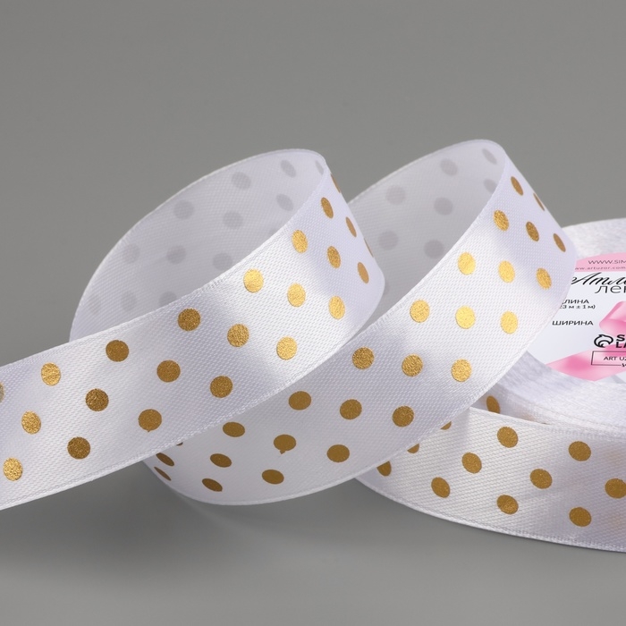 Лента атласная с тиснением «Горох», 25 мм × 23 ± 1 м, цвет белый №01