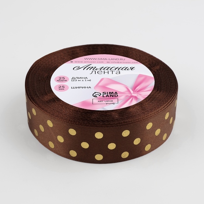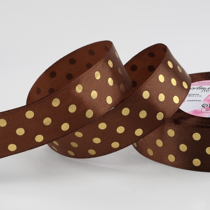 Лента атласная с тиснением «Горох», 25 мм × 23 ± 1 м, цвет коричневый №32