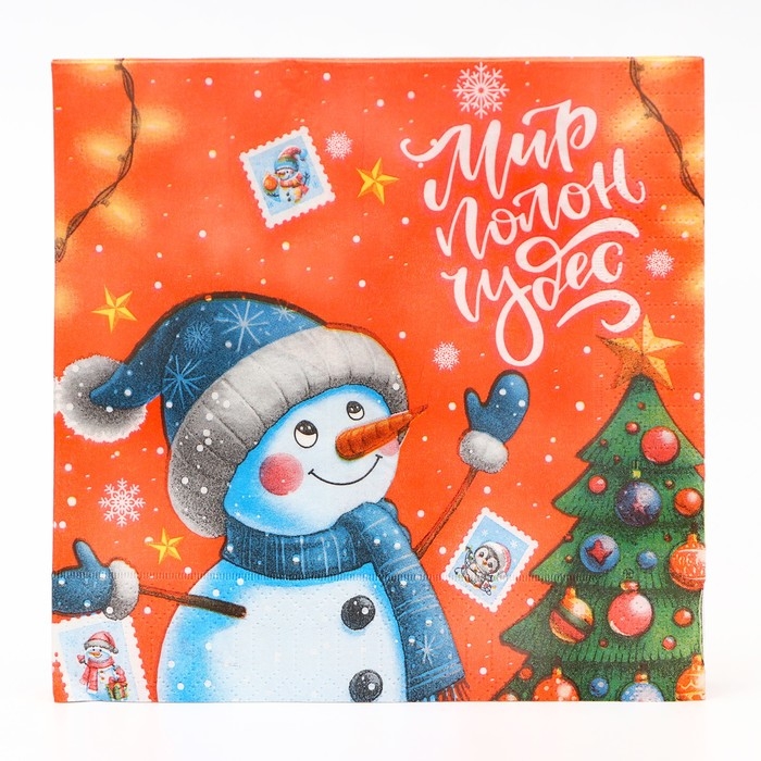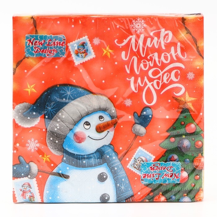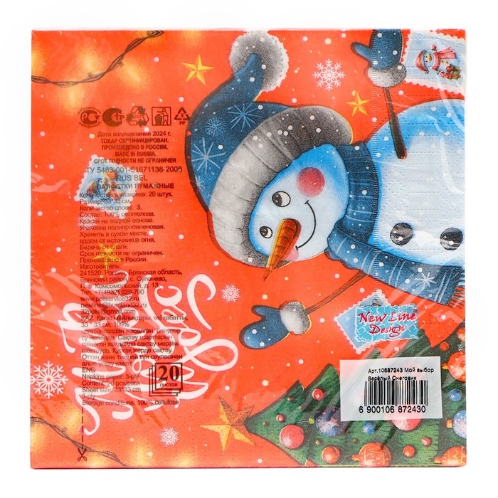 Новогодние салфетки бумажные Мой выбор «Весёлый Снеговик» 3 слоя, 33х33 см, 20 шт