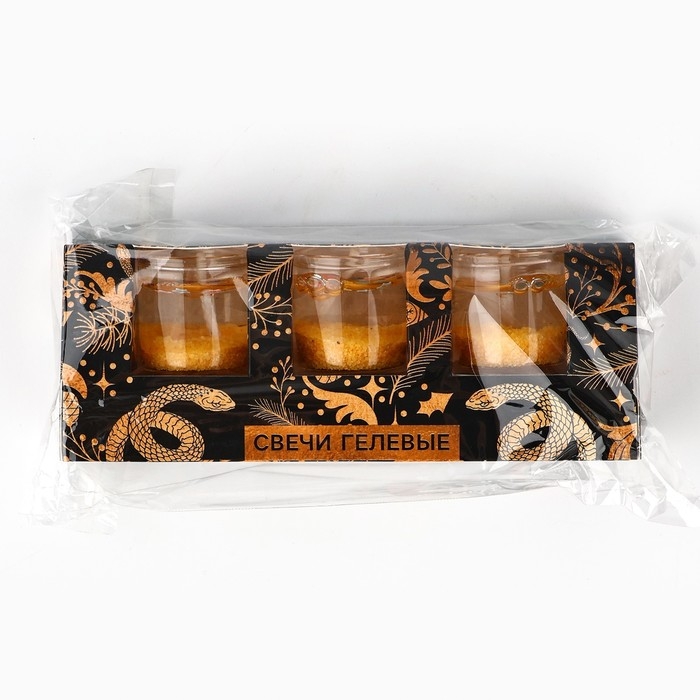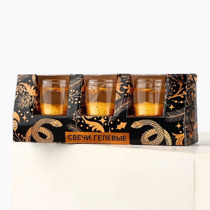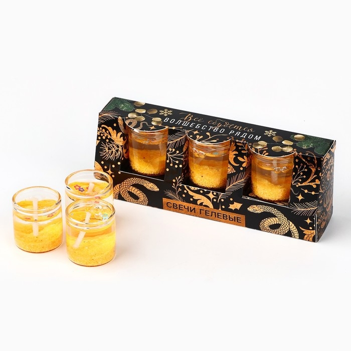 Свечи гелевые новогодние «Волшебство рядом» на Новый год на Новый год, 3 шт, золотые, 2,5 х2,5 х 2,5 см