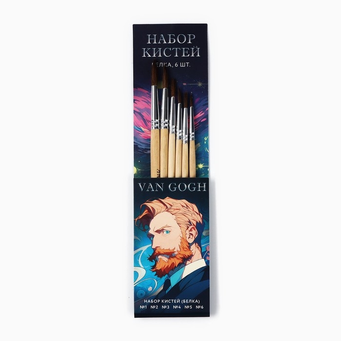Кисть для рисования набор 6 шт. белка № 1,2,3,4,5,6 «Ван Гог»