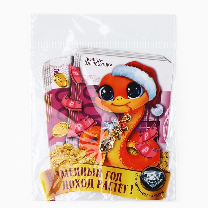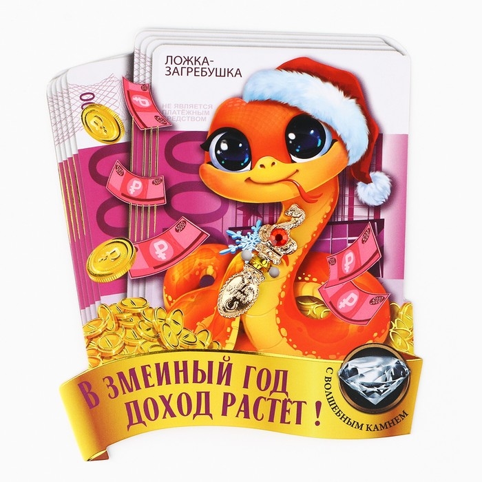 Ложка-загребушка c каменем новогодняя «Сказочный доход» на Новый год, 7 х 7 см
