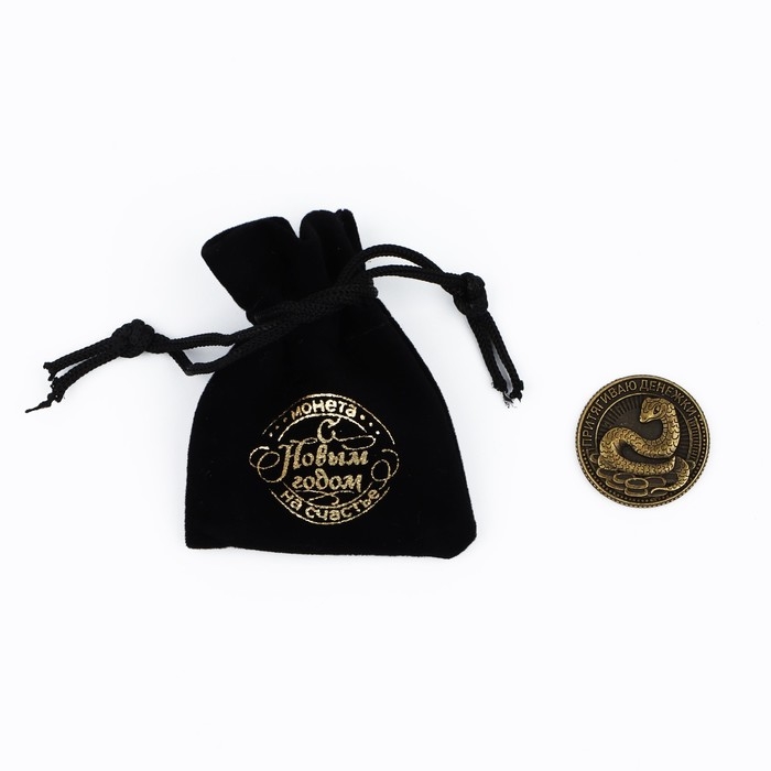 Монета в мешочке новогодняя «Притягиваю денежки» на Новый год, диам. 2.5 см