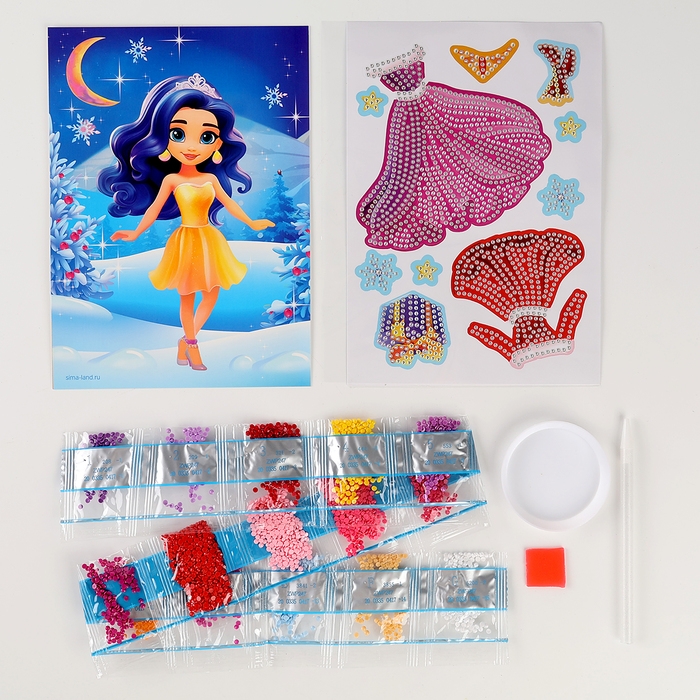 Новый год! Алмазная мозаика с частичным заполнением для детей. Наряди персонажа «Снежная красавица»