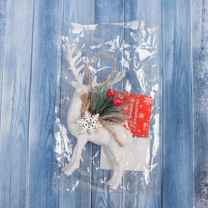 Украшение ёлочное "Олень с декором" 14х8 см, белый
