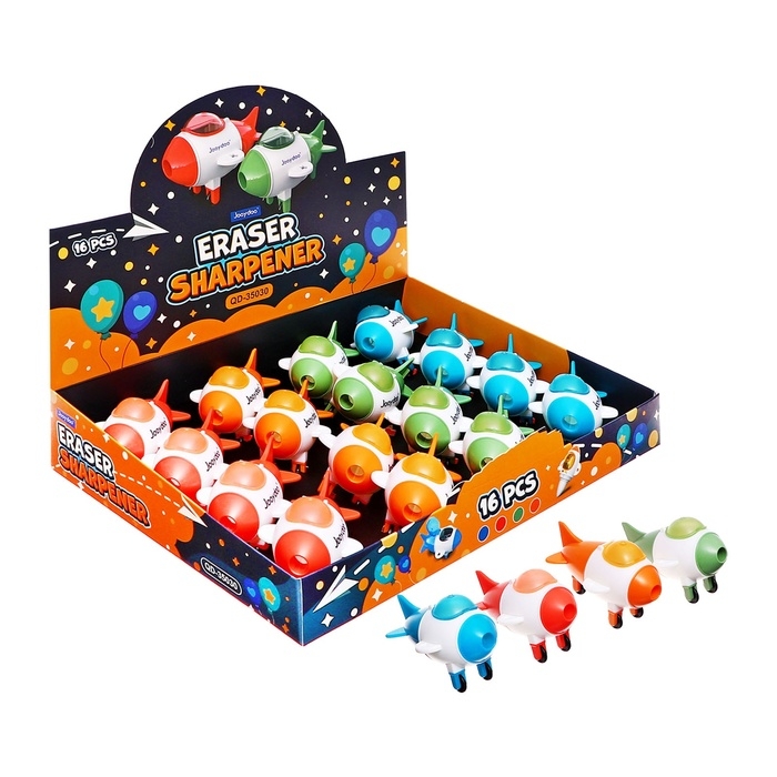 Точилка с контейнером, с ластиком, Ракета МИКС (штрихкод на штуке)