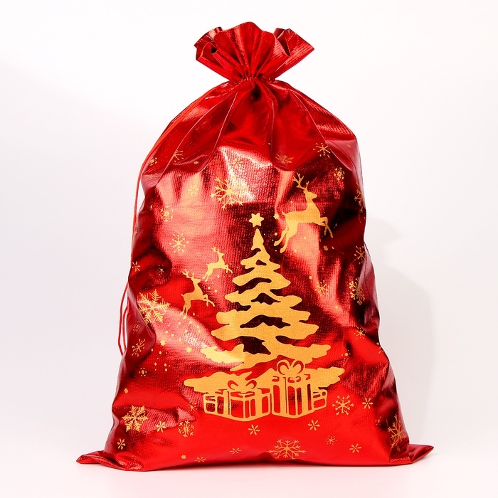 Подарочный мешок Деда Мороза «Елка с подарками», красный, 60 х 40см