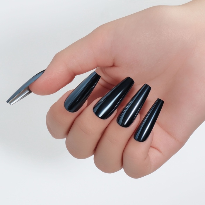 В наборе с накладными ногтями идут клеевые пластины. За счёт этого уменьшается вероятность механического травмирования природного ногтя. Клеевые пластины безопасны в применении и не вредят натуральным ногтям, в отличие от клея. Клей содержит составе высокую токсичность, что может сказаться на вашем организме.