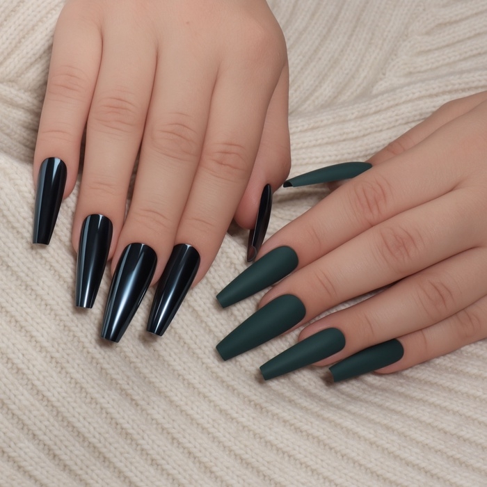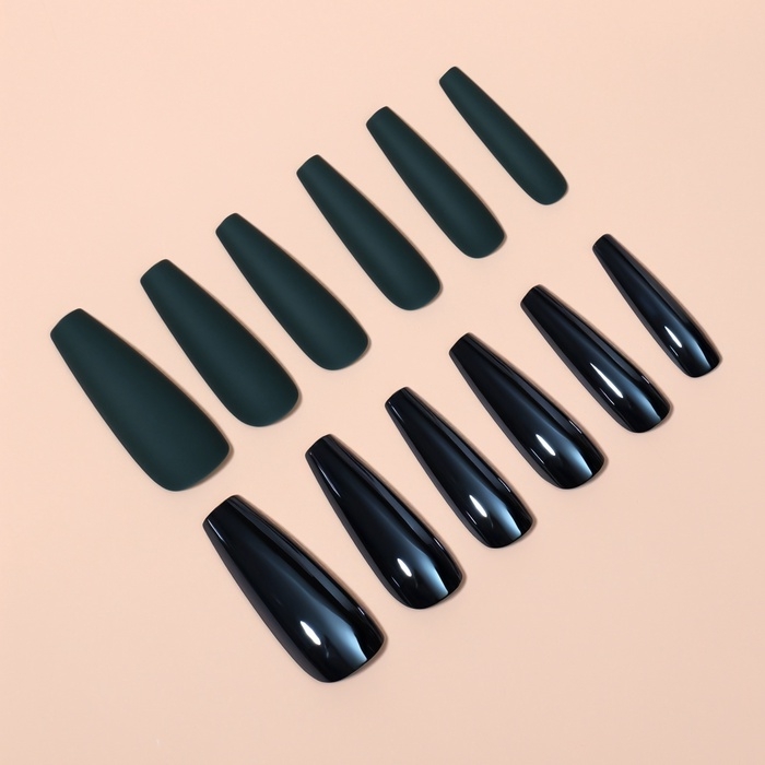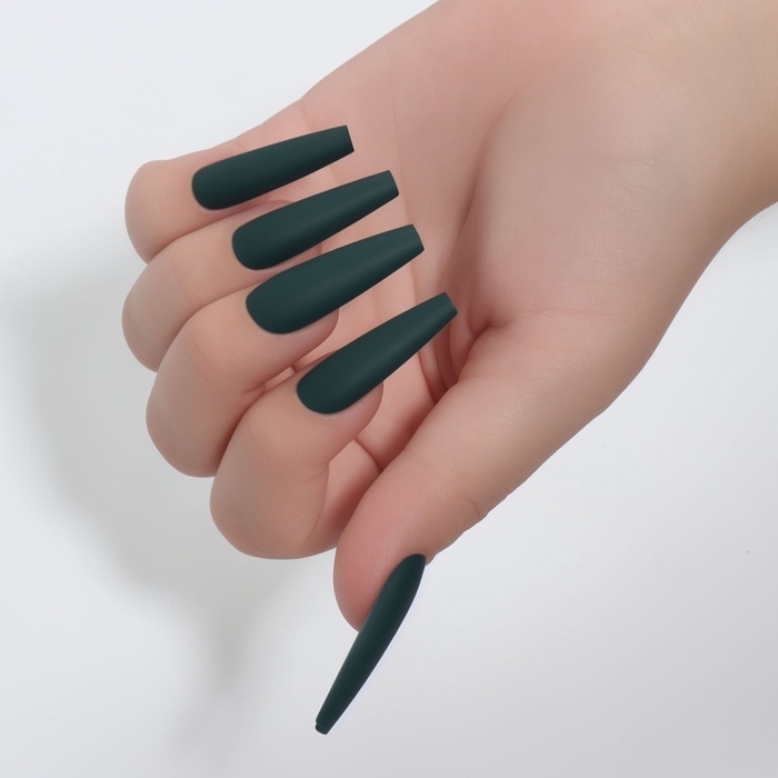 Накладные ногти, 12 шт, с клеевыми пластинами, форма балерина, матовый/хромированный, цвет изумрудный