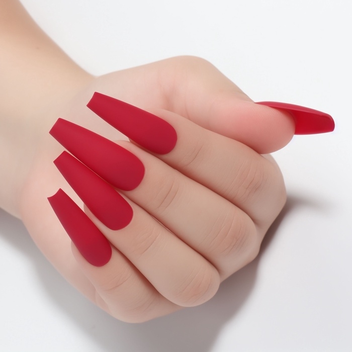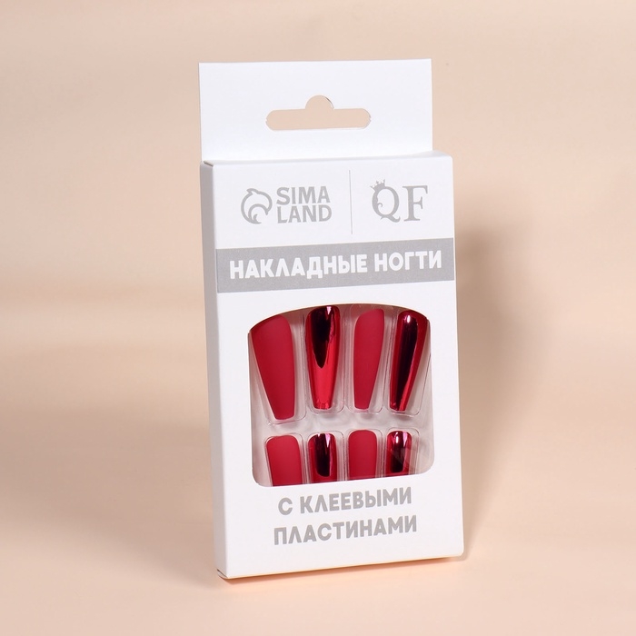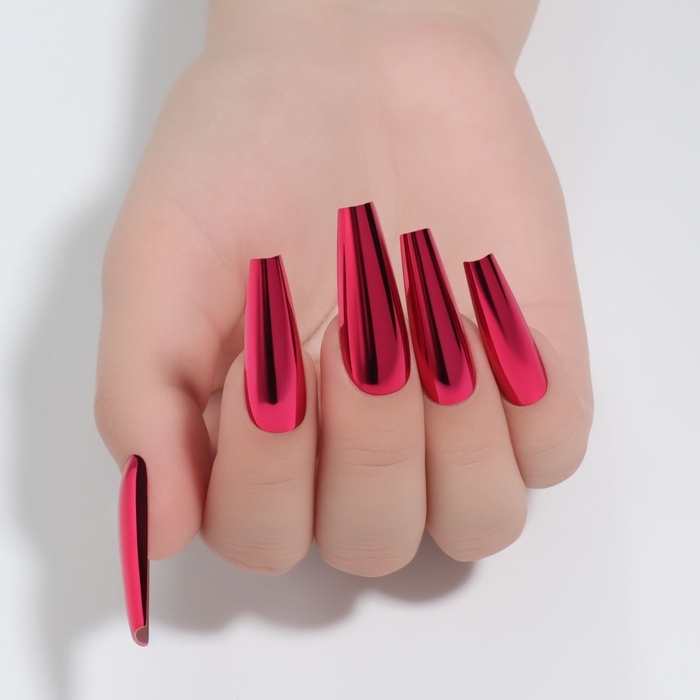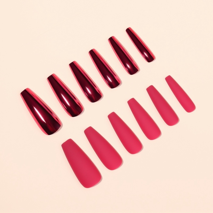 Накладные ногти, 12 шт, с клеевыми пластинами, форма балерина, матовый/хромированный, цвет бордовый/красный