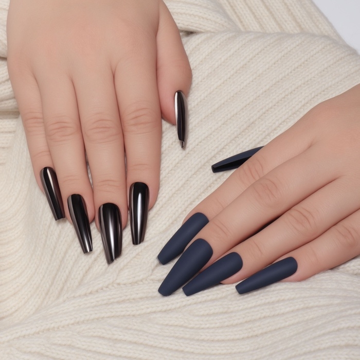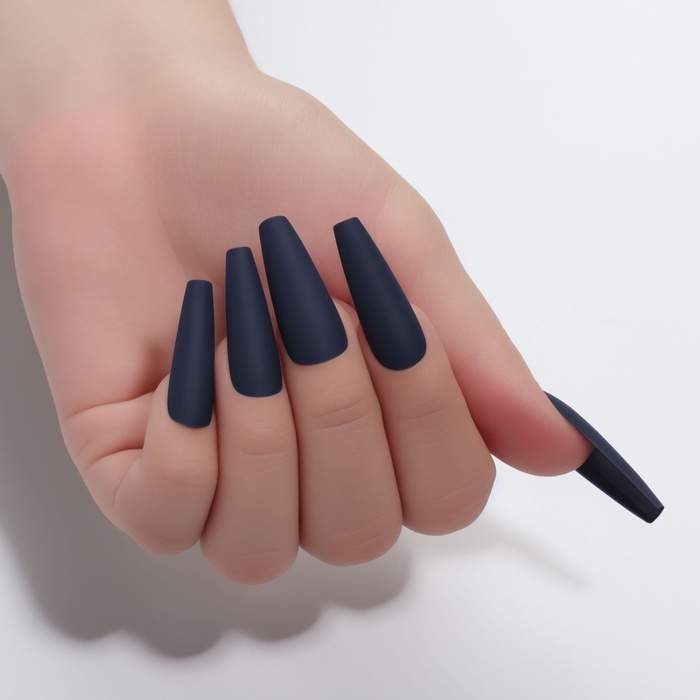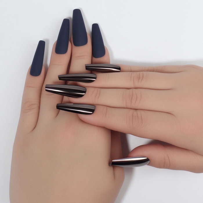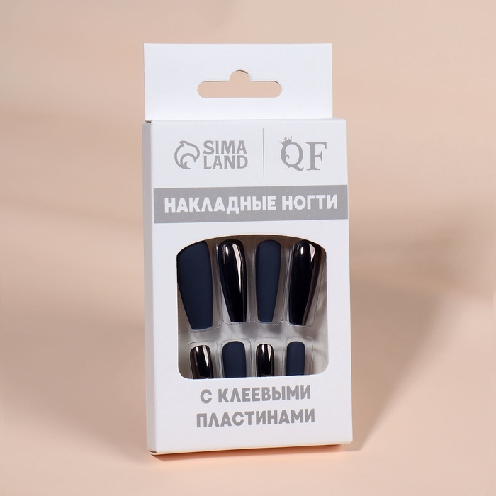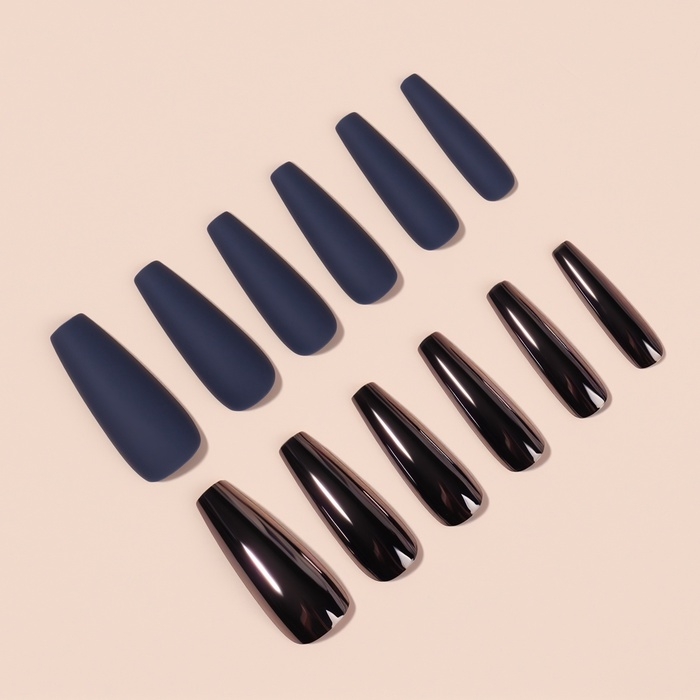 Накладные ногти, 12 шт, с клеевыми пластинами, форма балерина, матовый/хромированный, цвет синий/чёрный