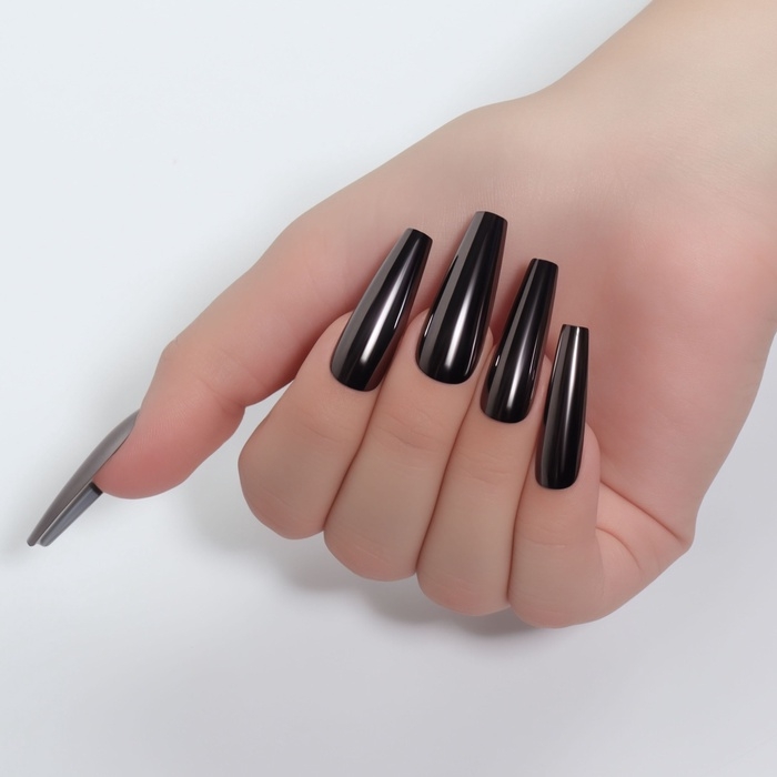 Накладные ногти «Однотонный чёрный», 24 шт, клеевые пластины, форма квадрат, цвет глянцевый черный