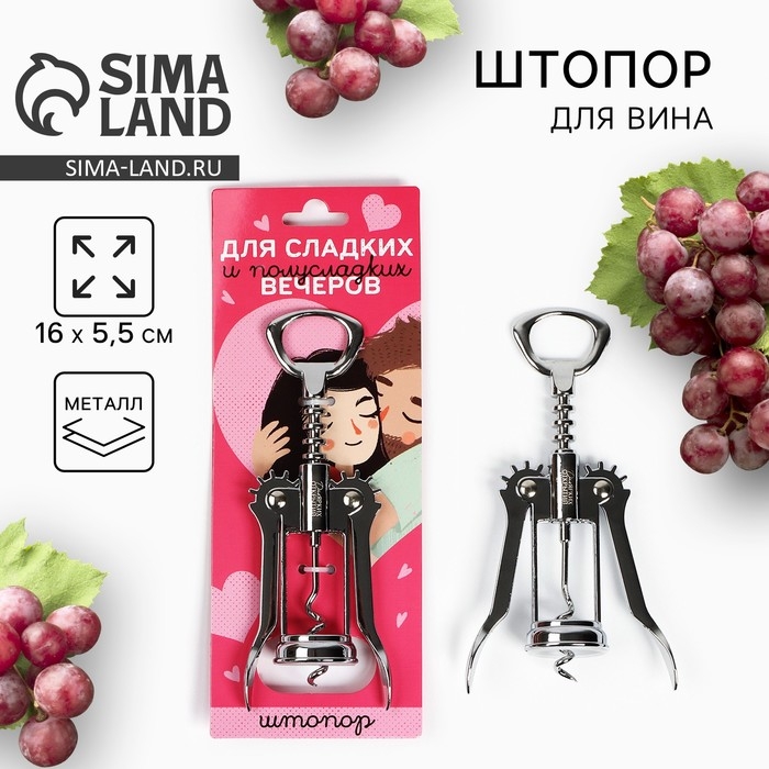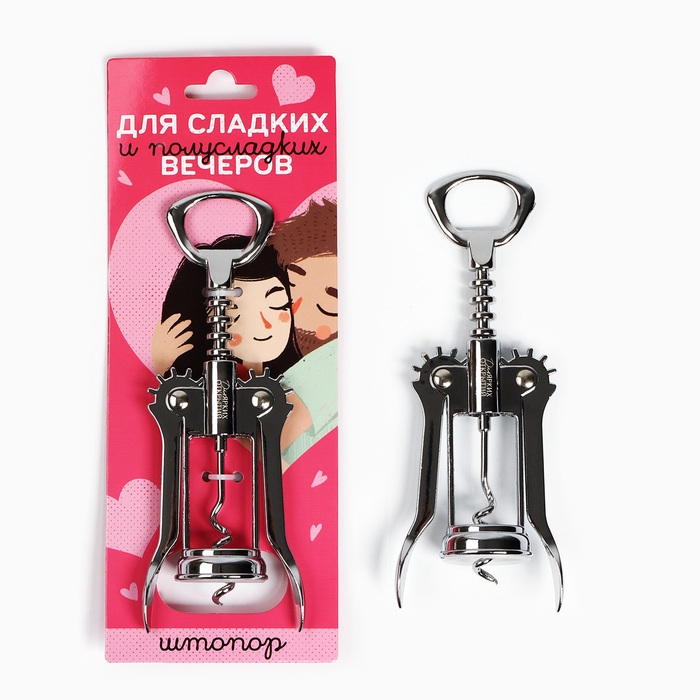 Штопор «Для сладких и полусладких поцелуев», 16 х 5,5 см