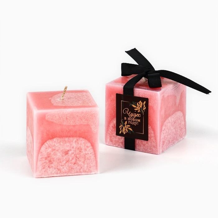 Свеча интерьерная новогодняя «Чудес» на Новый год, розовая, 5 х 5 см