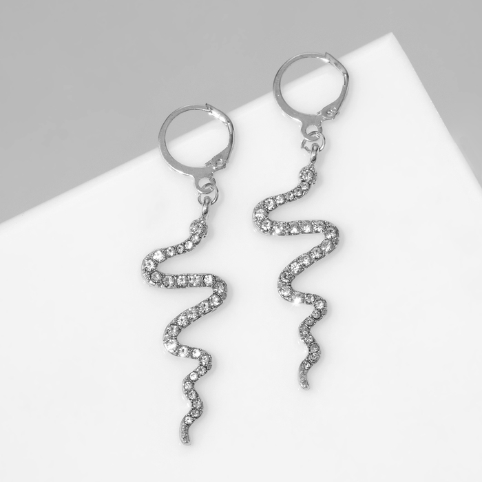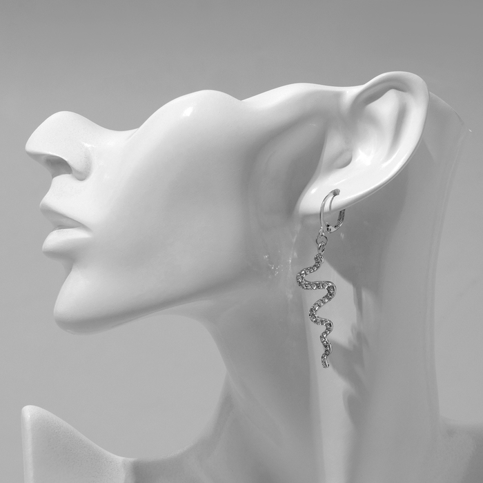 Новый год! Символ года 2025! Серьги висячие со стразами «Змейка», цвет белый в серебре