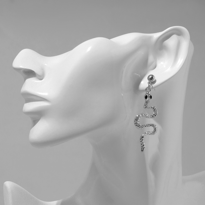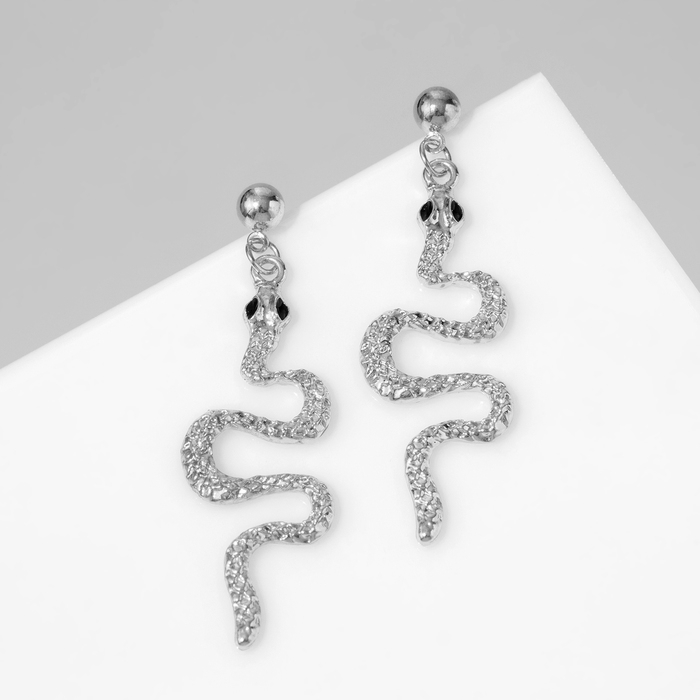 Новый год! Символ года 2025! Серьги висячие «Змея» мини, цвет чёрный в серебре