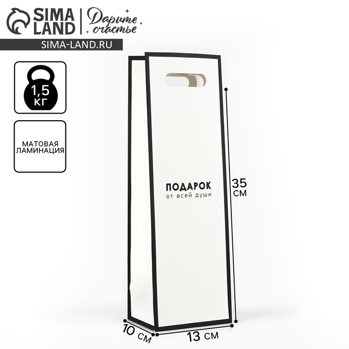 Пакет под бутылку «От всей души», 13 х 10 х 36 см