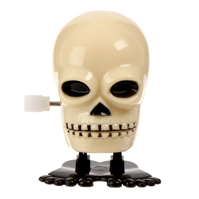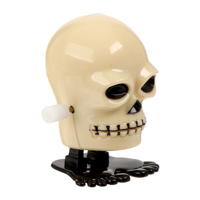 Заводная игрушка в виде черепа — это оригинальный персонаж для весёлых игр. Запустите механизм: фигурка начнет шевелиться, создавая комичное движение, которое развеселит детей и привлечёт их внимание.