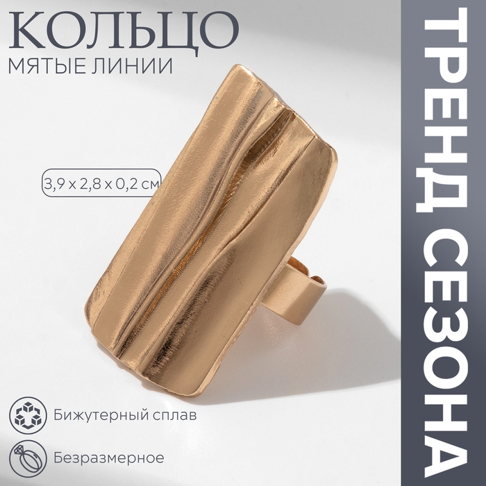 Кольцо «Мятые линии» прямоугольник, цвет матовое золото, безразмерное