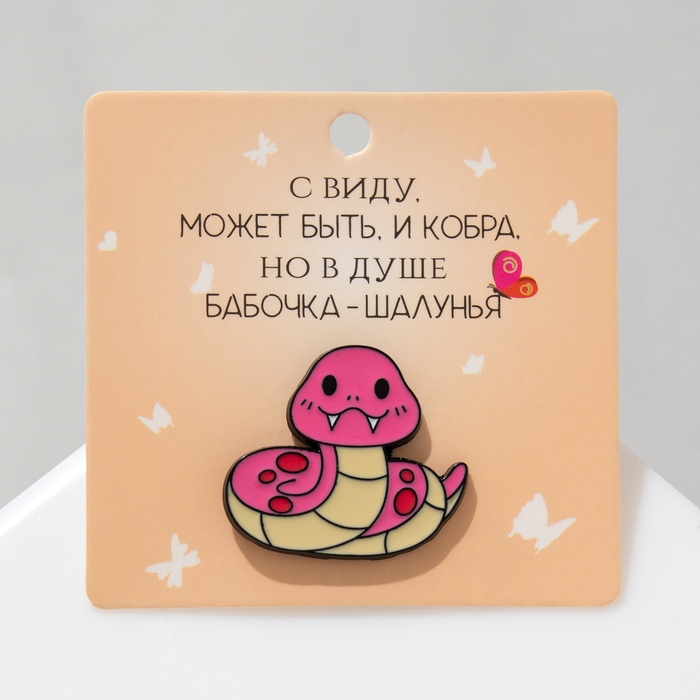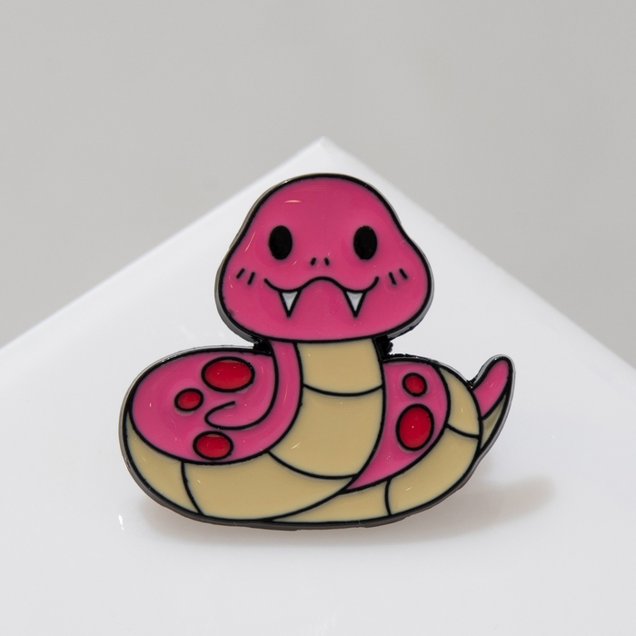 Новый год! Символ года 2025! Значок «Змейка» счастливая, цвет розовый в чёрном металле