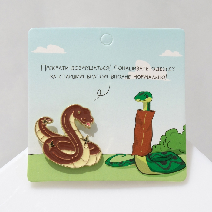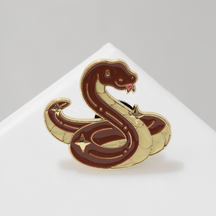 Новый год! Символ года 2025! Значок «Змейка» добрая, цвет коричневый в золоте