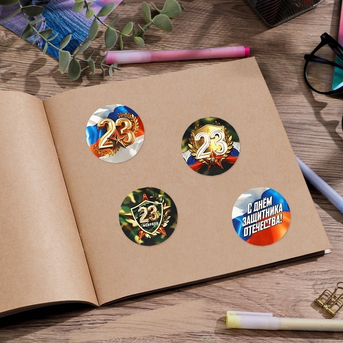 Набор наклеек для подарков «С 23 февраля», 40 шт, 4 х 4 см