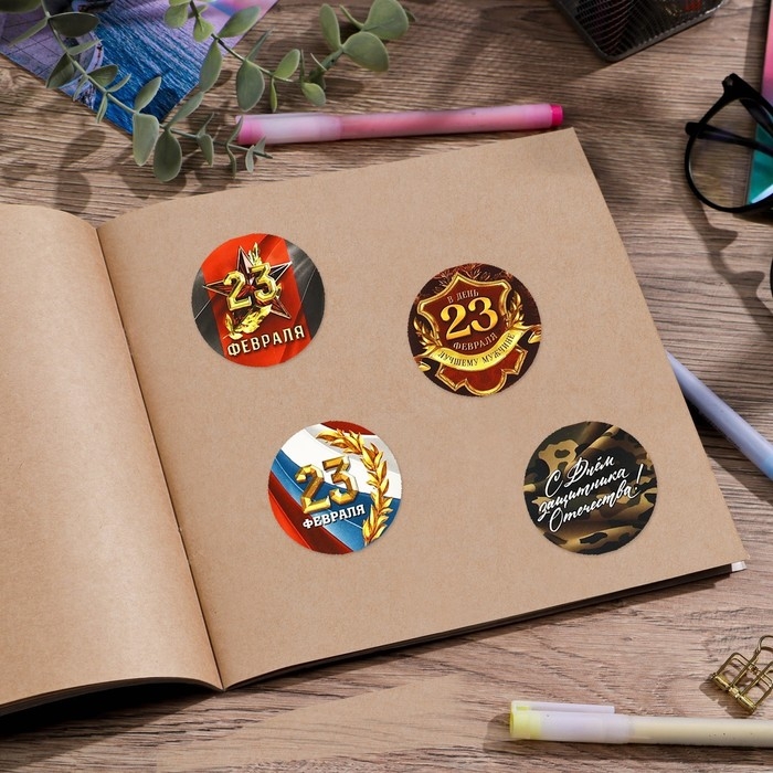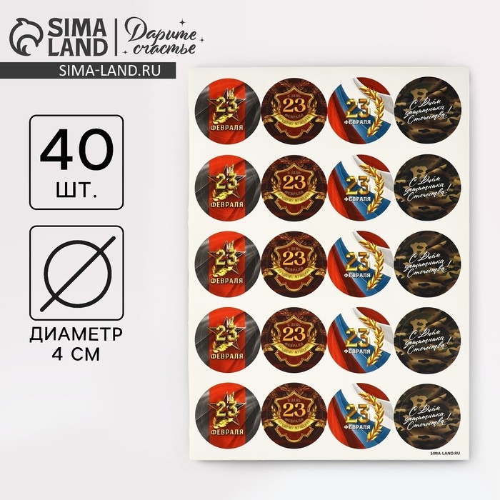 Набор наклеек для подарков «С 23 февраля», 40 шт, 4 х 4 см