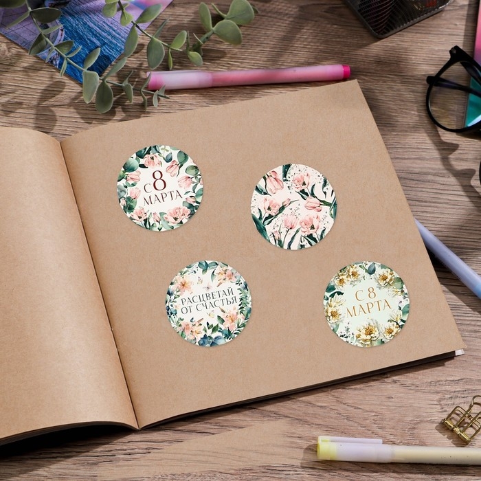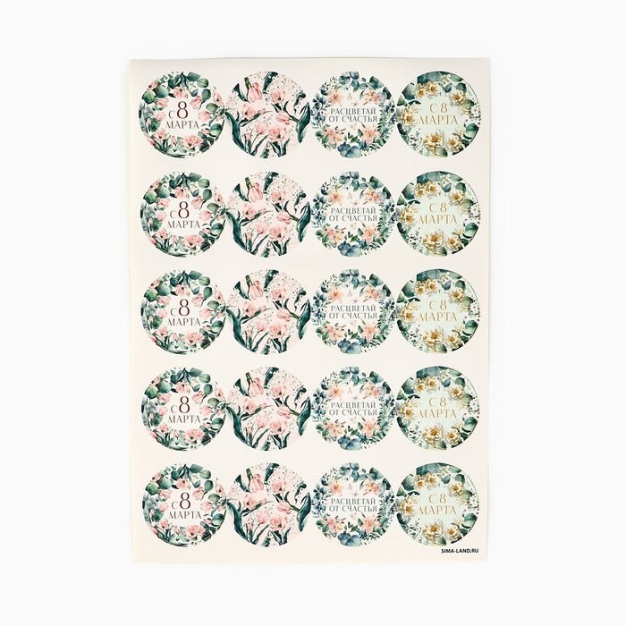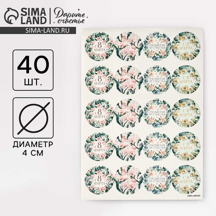 Набор наклеек для подарков «8 марта» цветы, 40 шт, 4 х 4 см