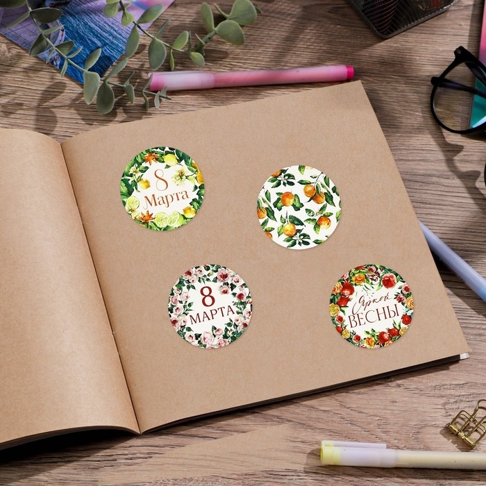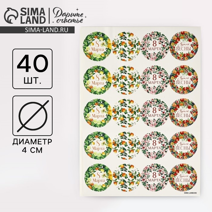 Набор наклеек для подарков «8 марта» цветы и фрукты, 40 шт, 4 х 4 см