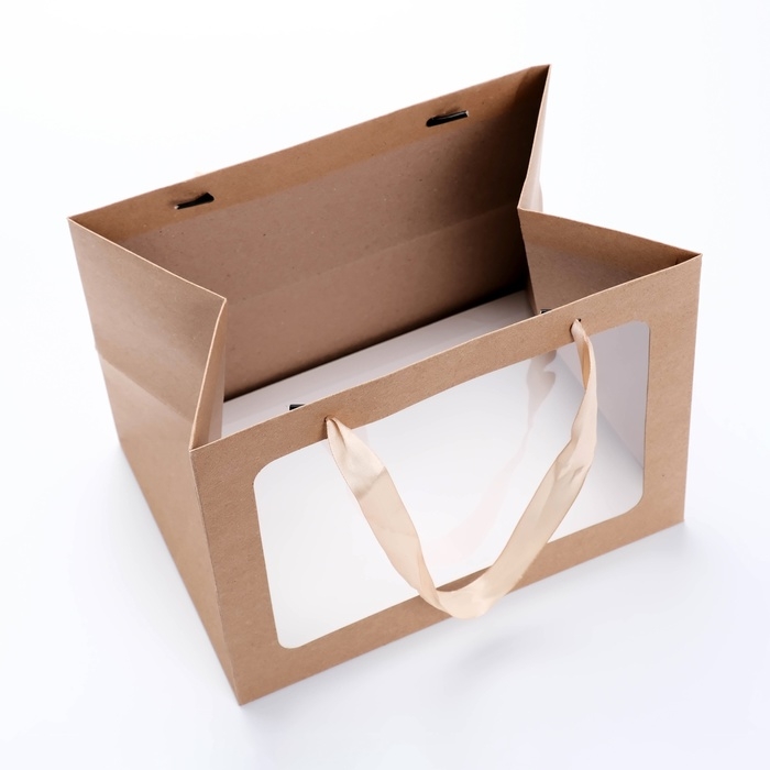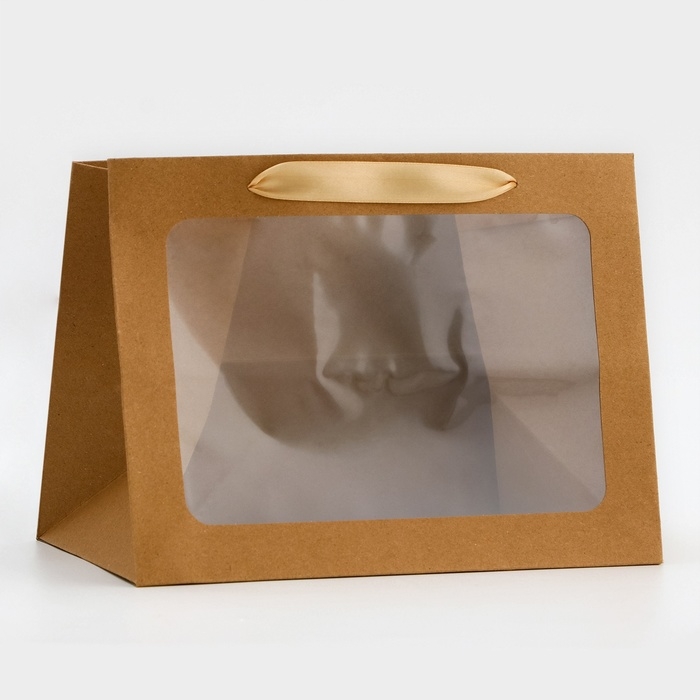 Пакет подарочный с широким дном и окном 25 х 19 х 18 см, крафт